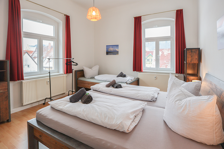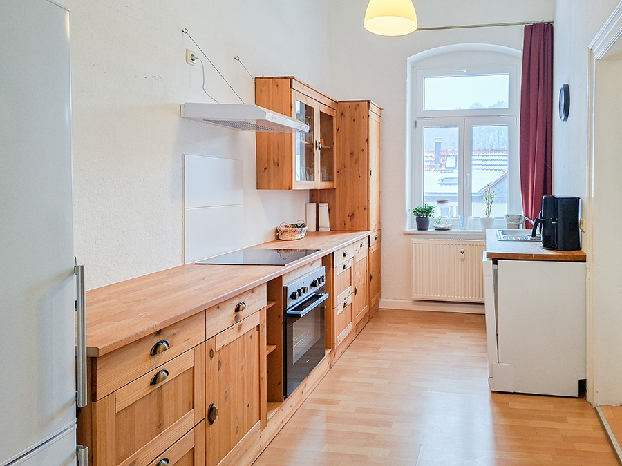Die 80m² große Ferienwohnung in Wehlen, mitten in der Sächsischen Schweiz, ist perfekt für 7 Personen geeignet. Die Küche ist ausgestattet mit Herd, Backofen, Kühl-/Gefrierkombi, Kaffeemaschine, Wasserkocher und Toaster. Im Wohnzimmer mit TV befindet sich ein gemütliches Sofa. Im Schlafzimmer Richtung Westen gibt es ein Doppelbett und ein Einzelbett. Das Schlafzimmer Richtung Süden verfügt über zwei Etagenbetten. Im Eingangsbereich sind genügend Abstellmöglichkeiten. Im Bad befindet sich eine Badewanne und WC.