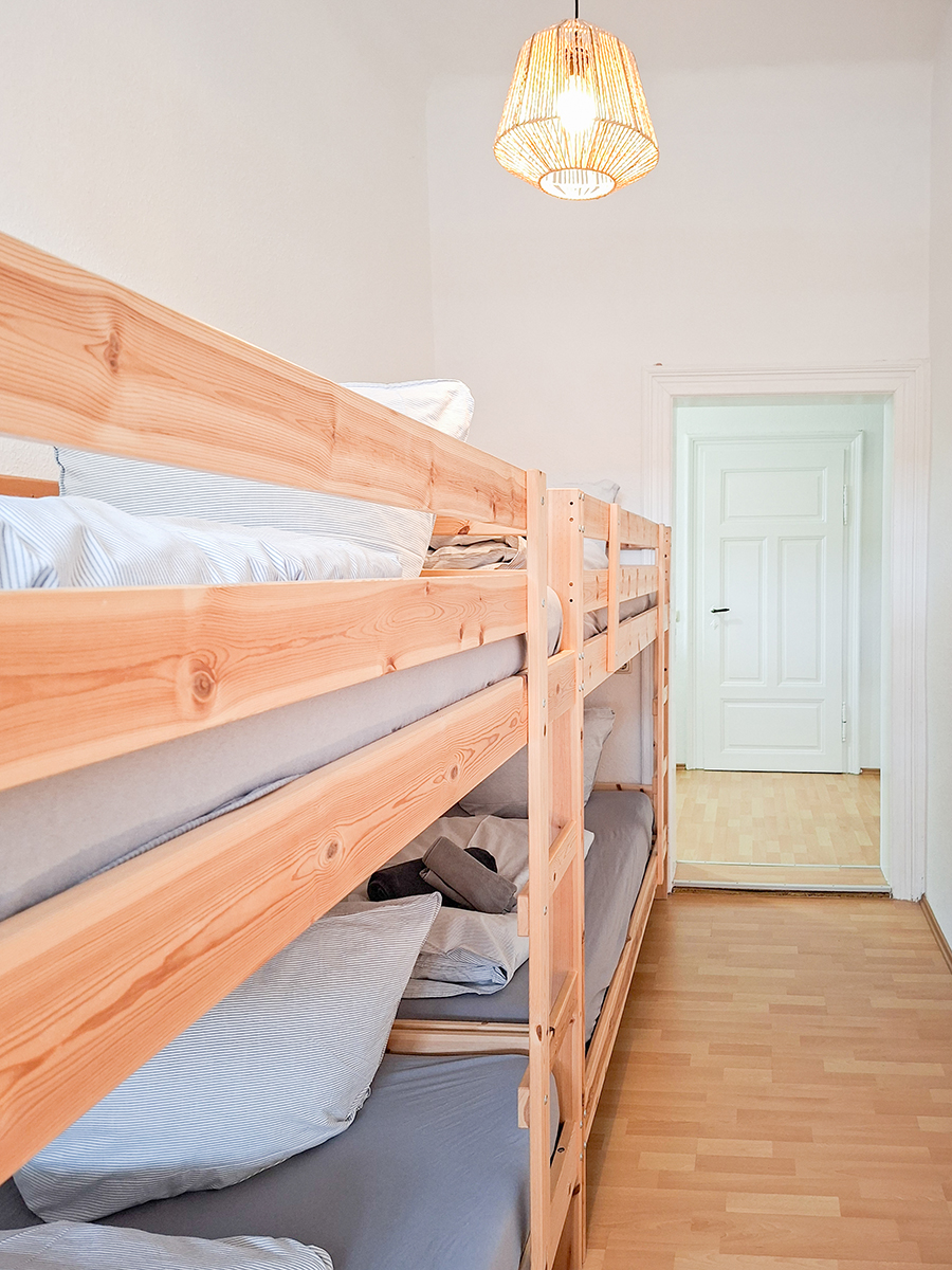 - 2 Schlafzimmer (1 x Doppelbett + 1 x Einzelbett, 2 x Etagenbetten)