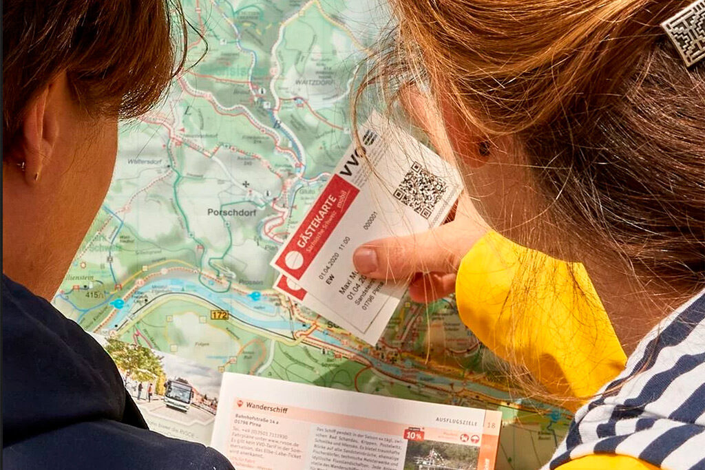 Mit der “Gästekarte mobil” für Stadt Wehlen können Sie neben zahlreichen Vergünstigungen für Freizeiterlebnisse auch öffentliche Verkehrsmitteln des VVO in der Sächsischen Schweiz kostenfrei nutzen, um die Ausflugsziele in der Umgebung zu erreichen.